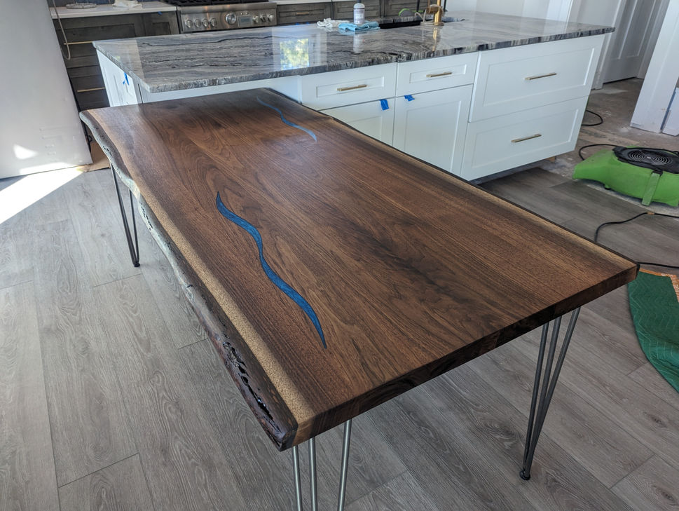 Almost all my tables are done on a commission basis. I focus on small and medium format live edge products. Typically, those are end tables, wall tables, couch tables or coffee. I incorporate resin as a rive or inlay, fractal burning and basic engraving depending on the client desires.